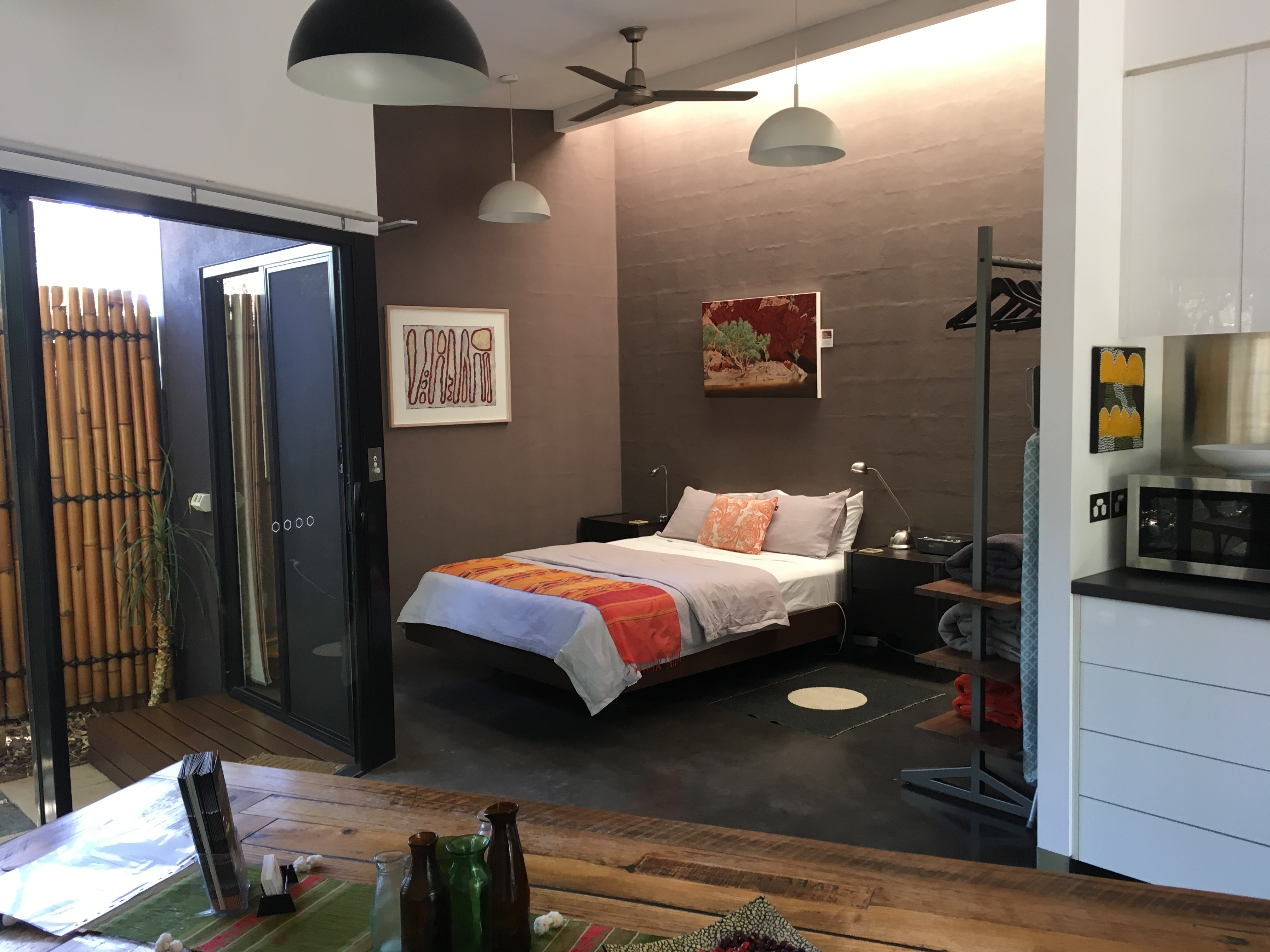 A 20 min walk from the town with its spectacular surroundings, vibrant cultural and community life and reputation as the hub of the Central Australian Aboriginal art world, Studio Five will suit your professional and relaxation needs for short or long-term stays.